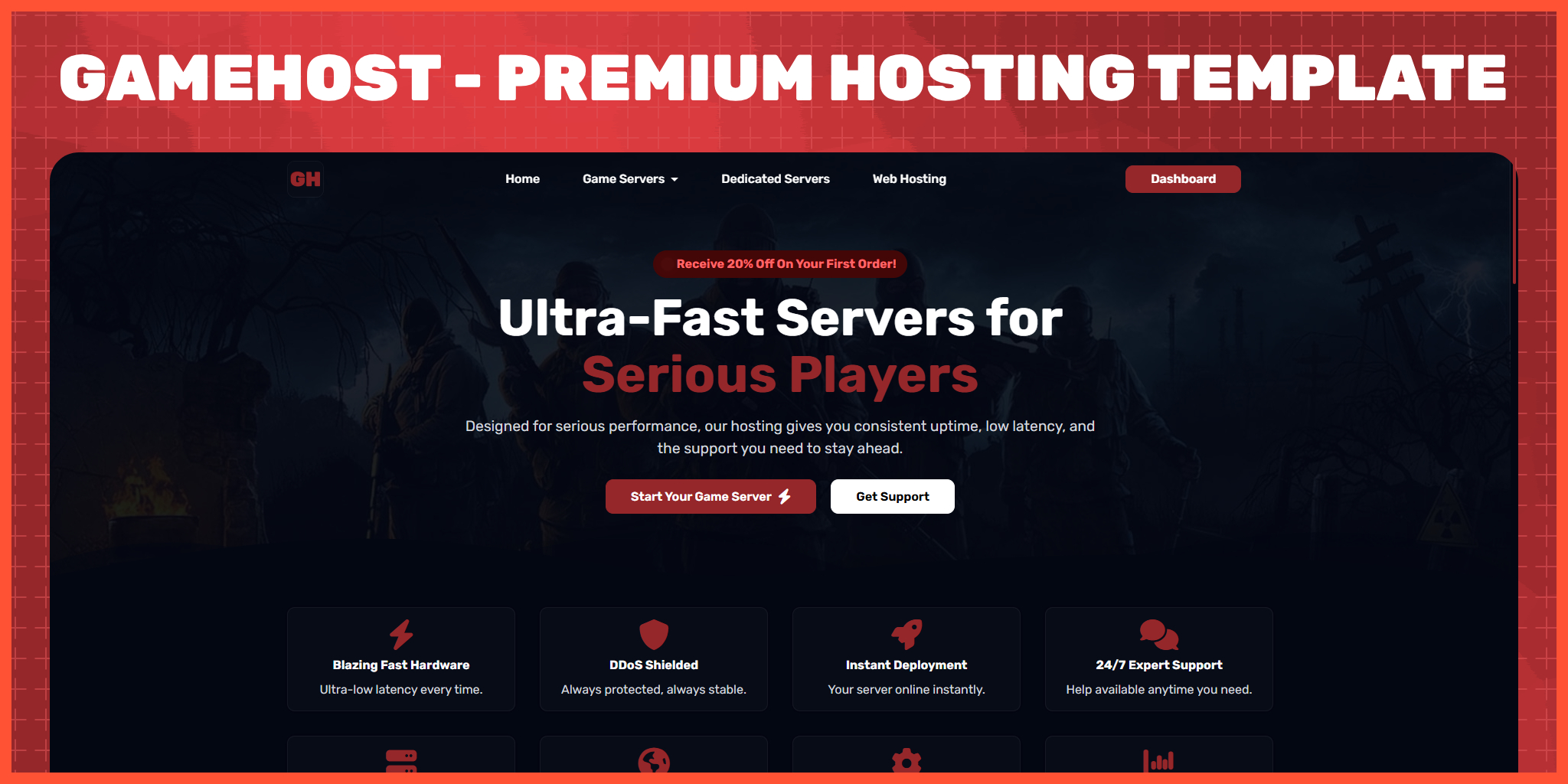 Launch your hosting brand with a fully equipped, modern website template.